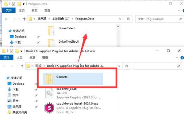 9、拷贝GenArts文件夹到C:ProgramData。