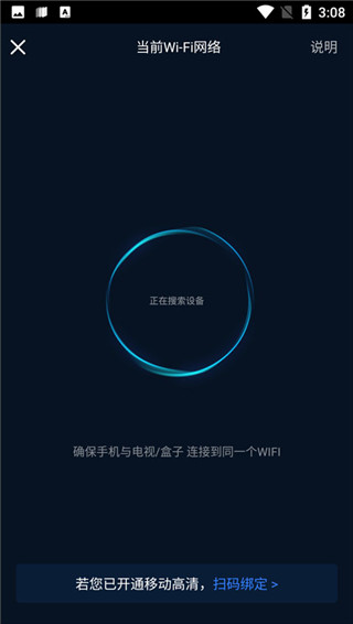 3、点击投屏图标之后,会自动搜索可以投屏的设备,如果要投屏到电视上,需要把电视打开,且打开无线投屏功能,和手机连接的是同一个wifi