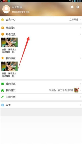 2、在打开的“我的”菜单中,我们就能找到以前的观看历史,点击此选项进入就能找到所有的看片记录了,如下图所示的操作方法!
