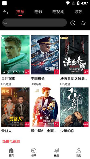 7、黑鲨影视app提供强大的视频搜索功能和电视点播功能,拿出手机就还能看直播