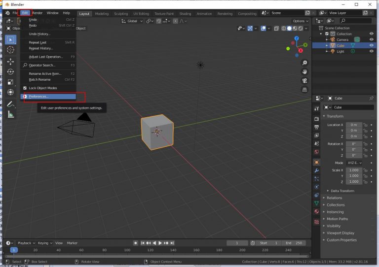 注意:这个属性面板只会在新建物体的时候出现一次,当物体进入编辑模式之后,这个面板就会消失了