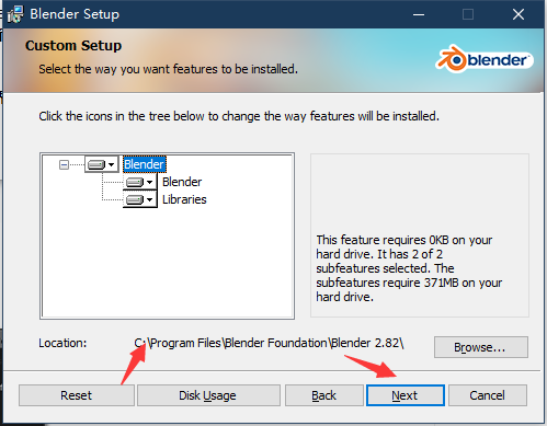 2、双击“blender-2.82-windows64.msi”开始安装,等待解压,跳出安装界面,点击next;